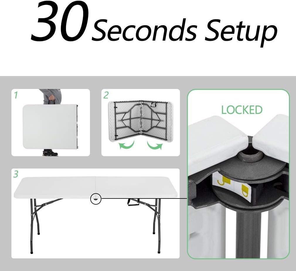 - No Assemble Needed:The picnic table come fully assembled and folded of the camping table.You only need open the box,take out of the plastic table.Then you can use it.