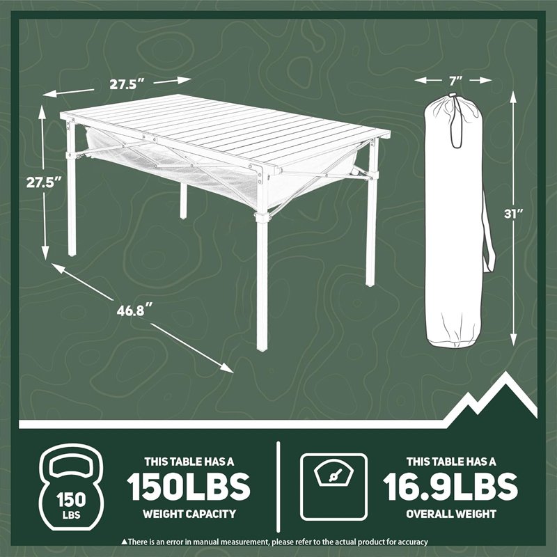 - Ultra-Lightweight & Portable Camp Table – At only 16.9 lbs, this compact folding table is easy to carry, yet weather-resistant for hiking, RV trips, festivals, and more.