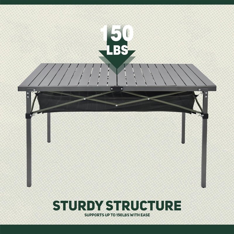- Quick 1-Minute Setup Folding Camping Table – No tools needed! This portable outdoor table features a roll-up design for instant assembly—perfect for camping, BBQs, picnics, tailgating, and beach trips.