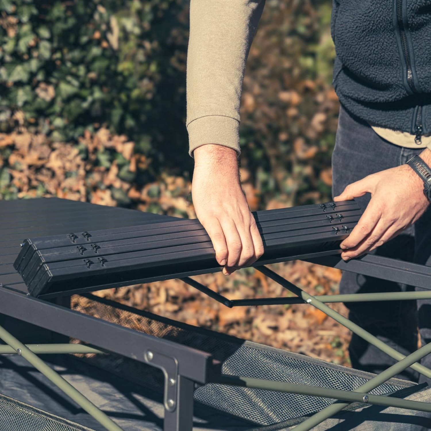 - All-in-One Outdoor Dining Table with Carry Bag – The roll-top camping table folds flat for storage and includes a travel bag, making it a must-have for campers, travelers, and outdoor enthusiasts.
