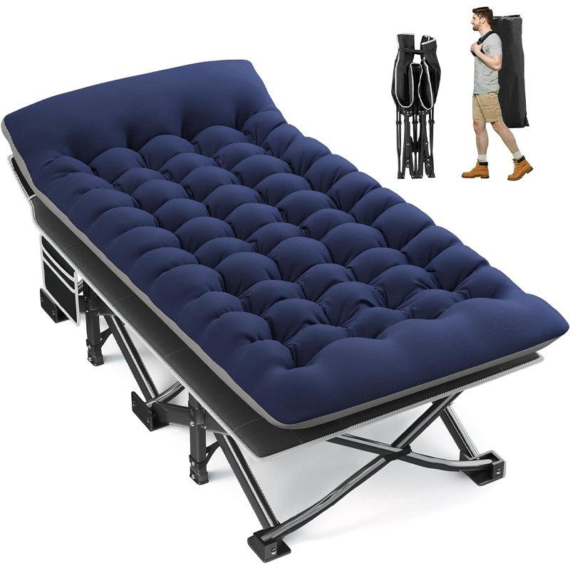 - Portable Camping Cot: The foldable camp cot can be set up in a second. The folded size is 41″*10″*7.5″, and the weight is 17.4 lbs. Fragess camping bed includes an extra carry bag for convenient storage, making it easy to carry the cot for camping, RV trips, beach, patio, office naps, and more.